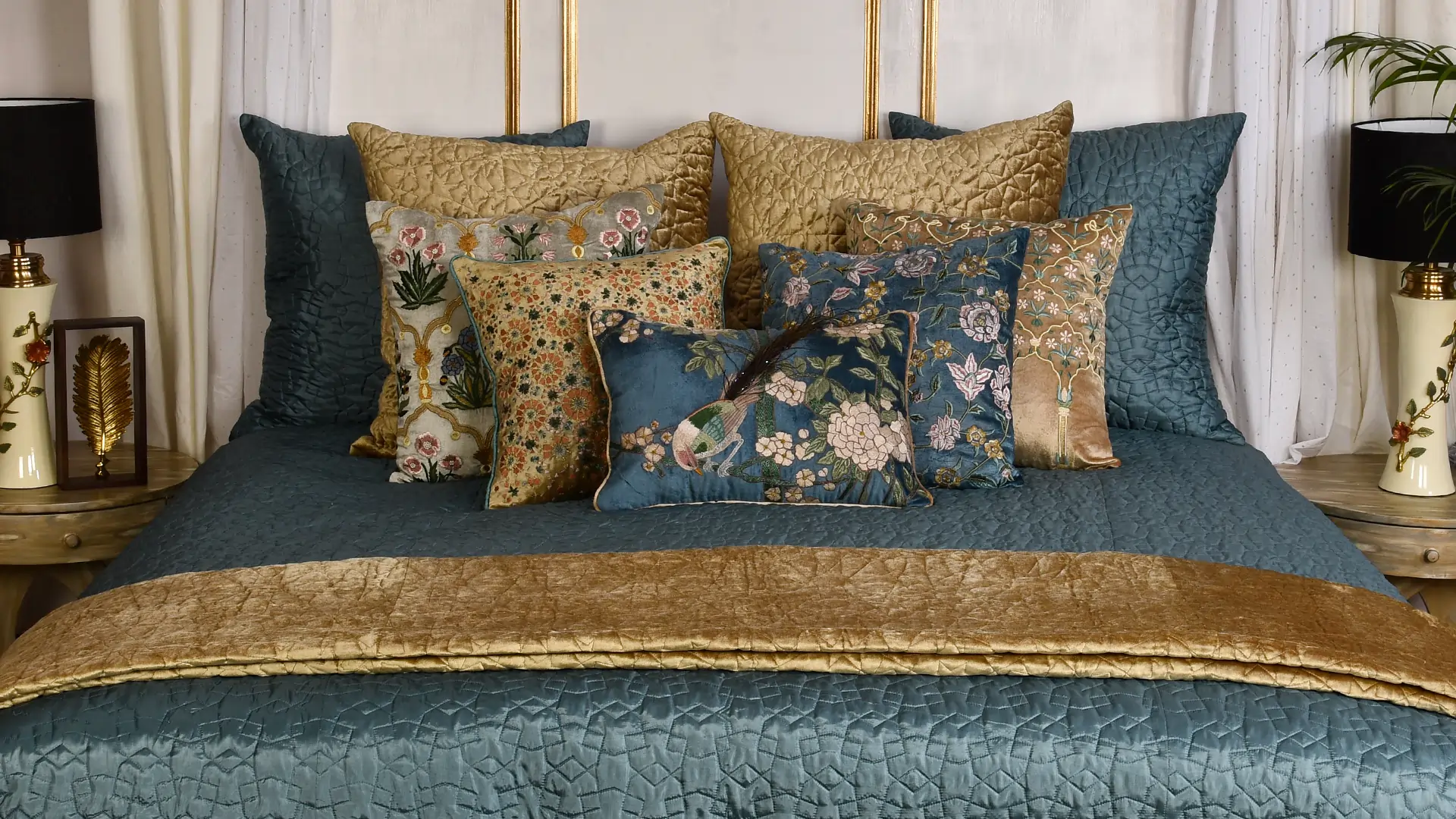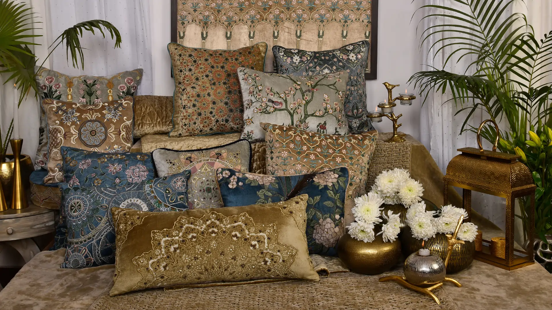 Oriental Foil Print Embroidery Cushion Cover