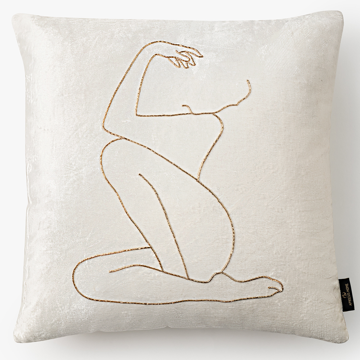 - This is an Abstract Art Embroidered Line Cushion Cover featuring a minimalist, continuous line drawing of a seated figure.