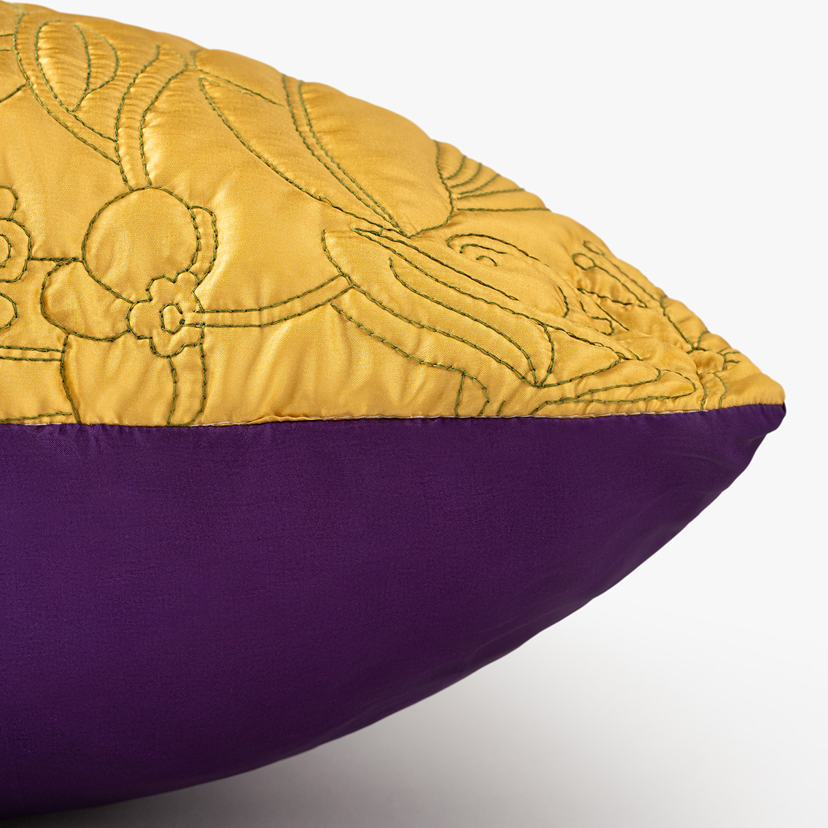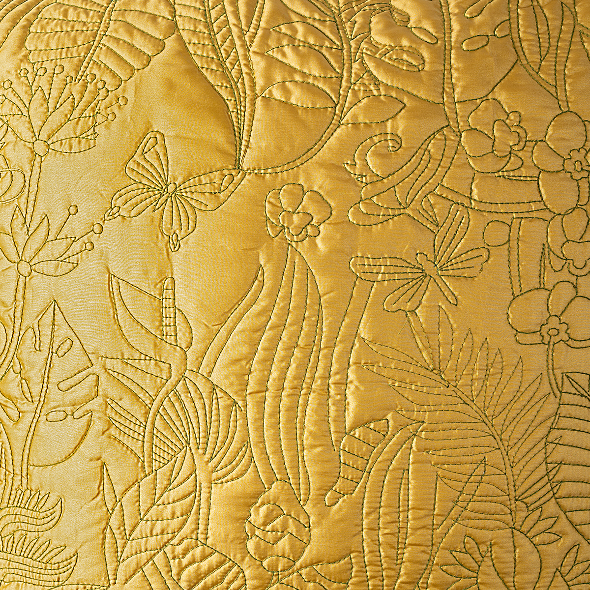 - Elevate your living space with the Cindy Nidham Embroidery Euro Cover — a luxurious textured cushion cover in a vibrant mustard yellow, perfect for adding warmth and elegance to any room.