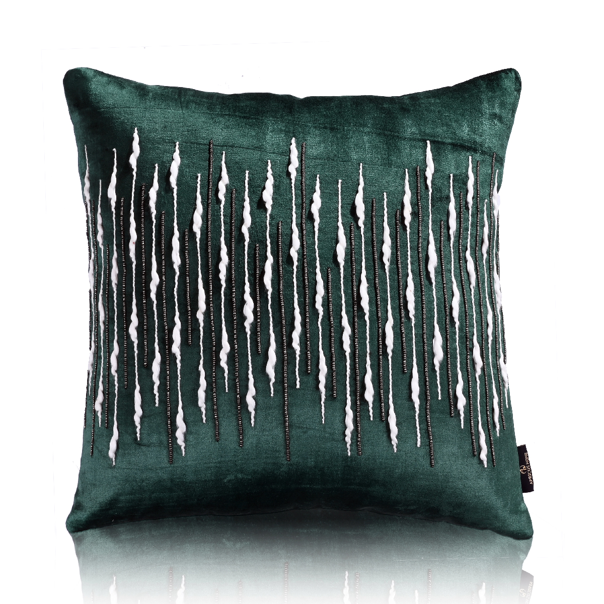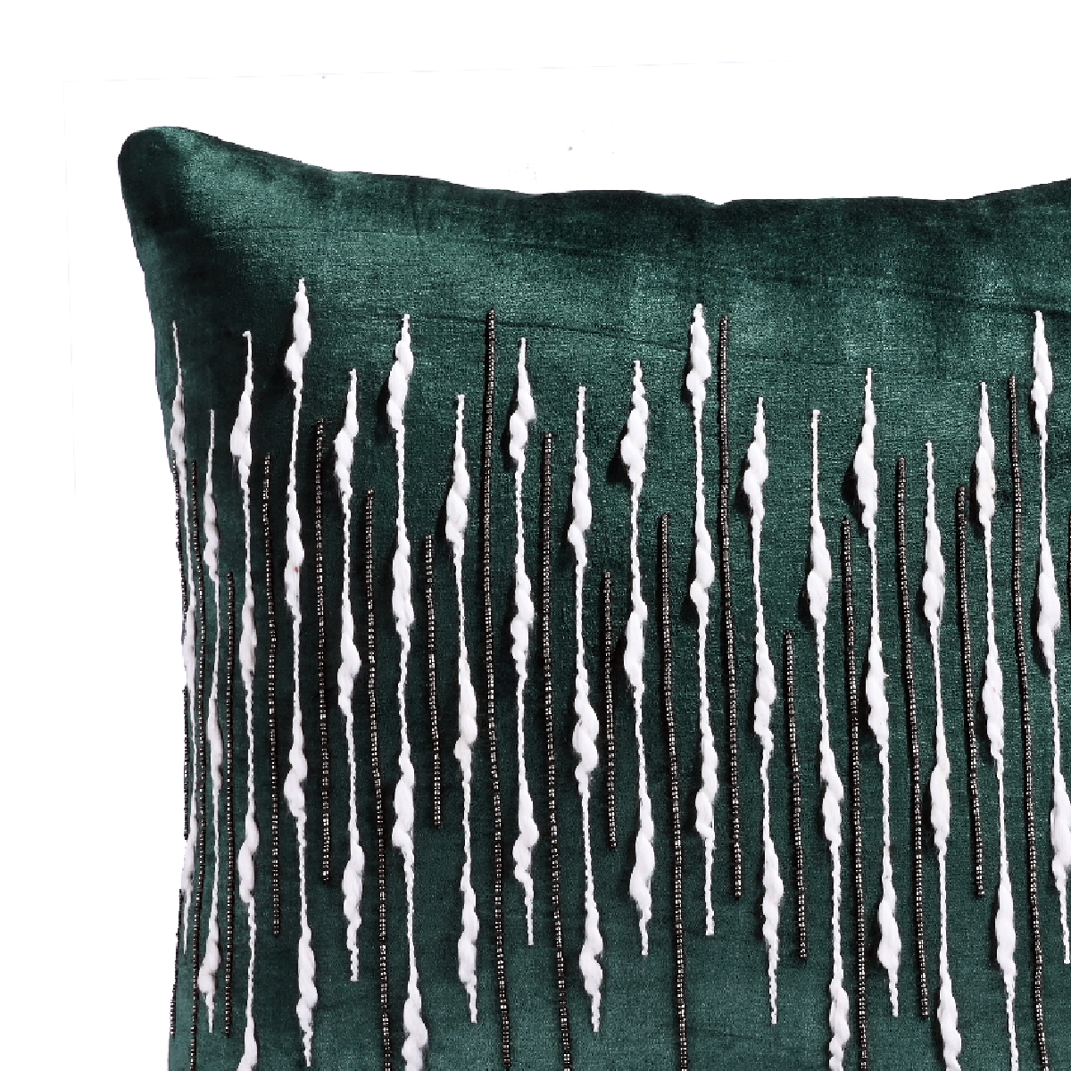 - With its intricate craftsmanship and bright gold sheen add an electric vibe to your home with this luxurious cushion featuring metallic colour embroidery on electric green velvet.