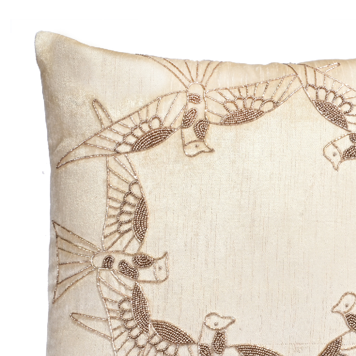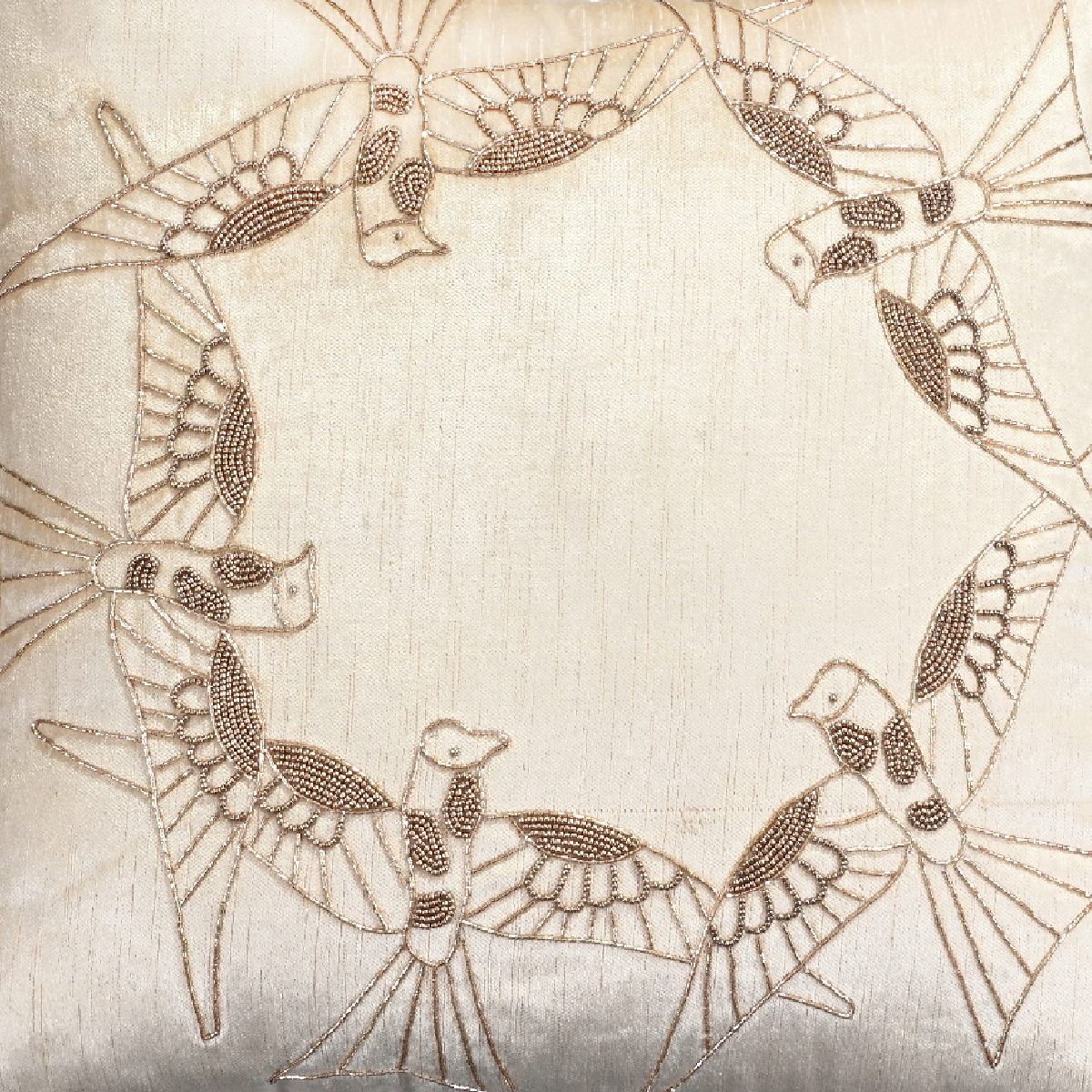 - These birds represent the mighty Simorgh who unity and produced a powerful energy capable of transforming the world for the better.Enrich your home interior by adding these unique birds that have been hand embroidered in gold cotton viscose velvet decorative cushions to the living and bedroom.