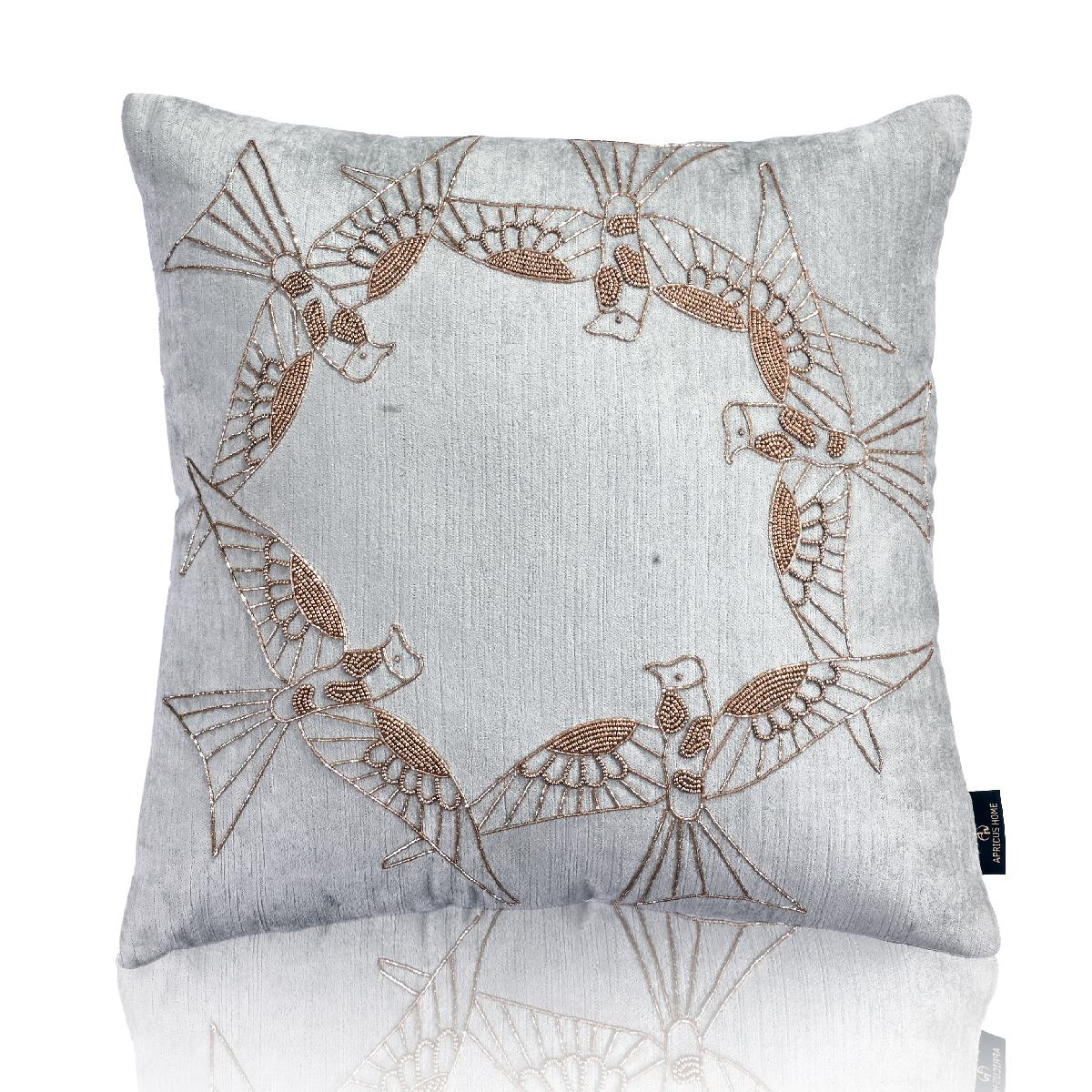 - Enrich your home interior by adding these unique birds that have been hand embroidered in gold cotton viscose velvet decorative cushions to the living and bedroom.